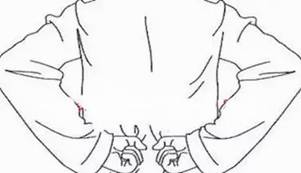两手反叉腰,拇指在前,按于腰侧不动,其余四指位于腰椎两侧处,用指腹向外抓擦皮肤,注意不要被指甲弄伤。两手同时进行,各抓擦36次。