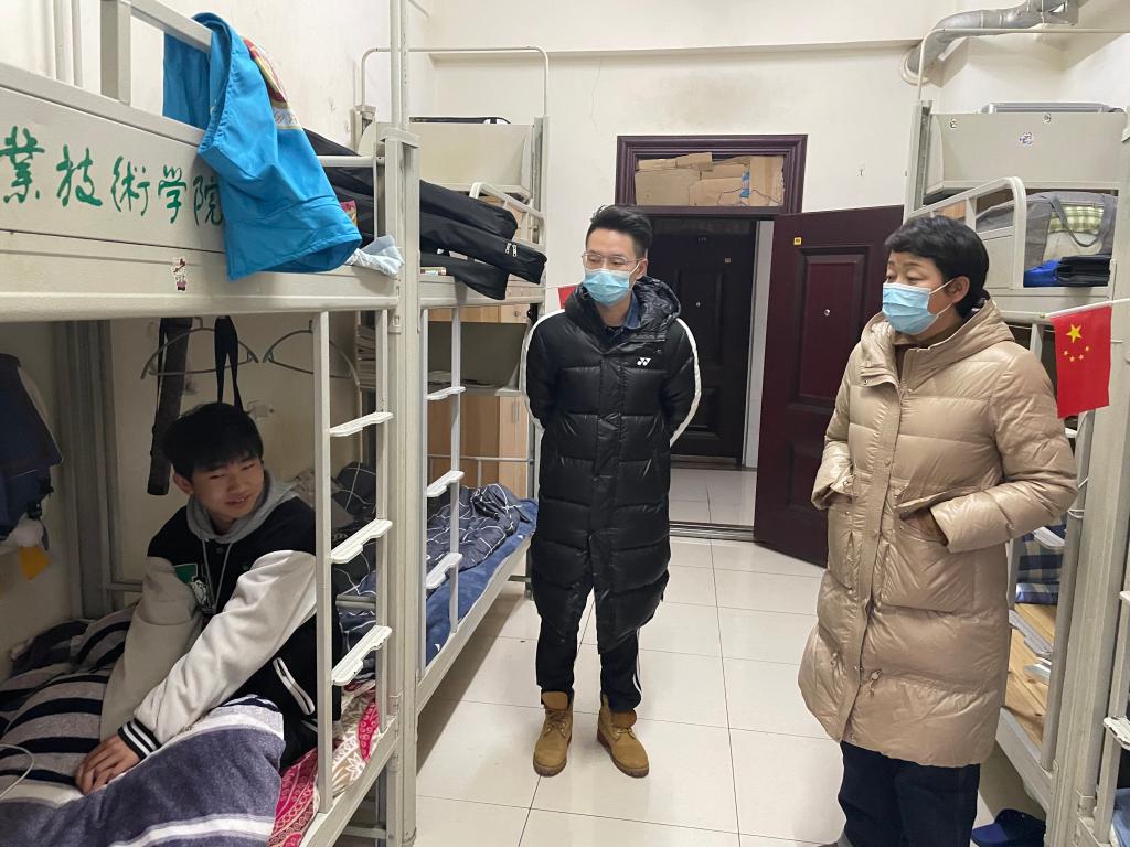 下午五点,学院支部岳荣书记、班主任郭莎、辅导员陈彦辉等一行走进学生宿舍,了解同学们生活、学习情况和检查宿舍安全用水用电,为返校同学送上最真挚的关怀与祝福。岳荣与同学们亲切交流,勉励他们尽快适应新学期生活。同时鼓励同学们珍惜宝贵的大学时光,在新学期里刻苦学习专业理论知识,树立专业自信,砥砺奋进、不负韶华。