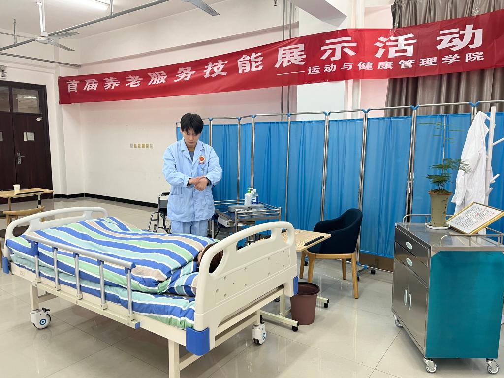 匠心铸就成才梦想,技能创造精彩人生。为提升养老服务水平,增强为老服务本领,推动教与学的双向互动,发展学生专业实践能力。12月6日上午,运动与健康管理学院举办首届养老服务技能展示活动。此次活动由卫生康复保健教研室组织实施,专任教师李倩倩负责协调组织,专任教师杜婧、李珊珊参加,老年保健与管理专业2021级学生参加展示。