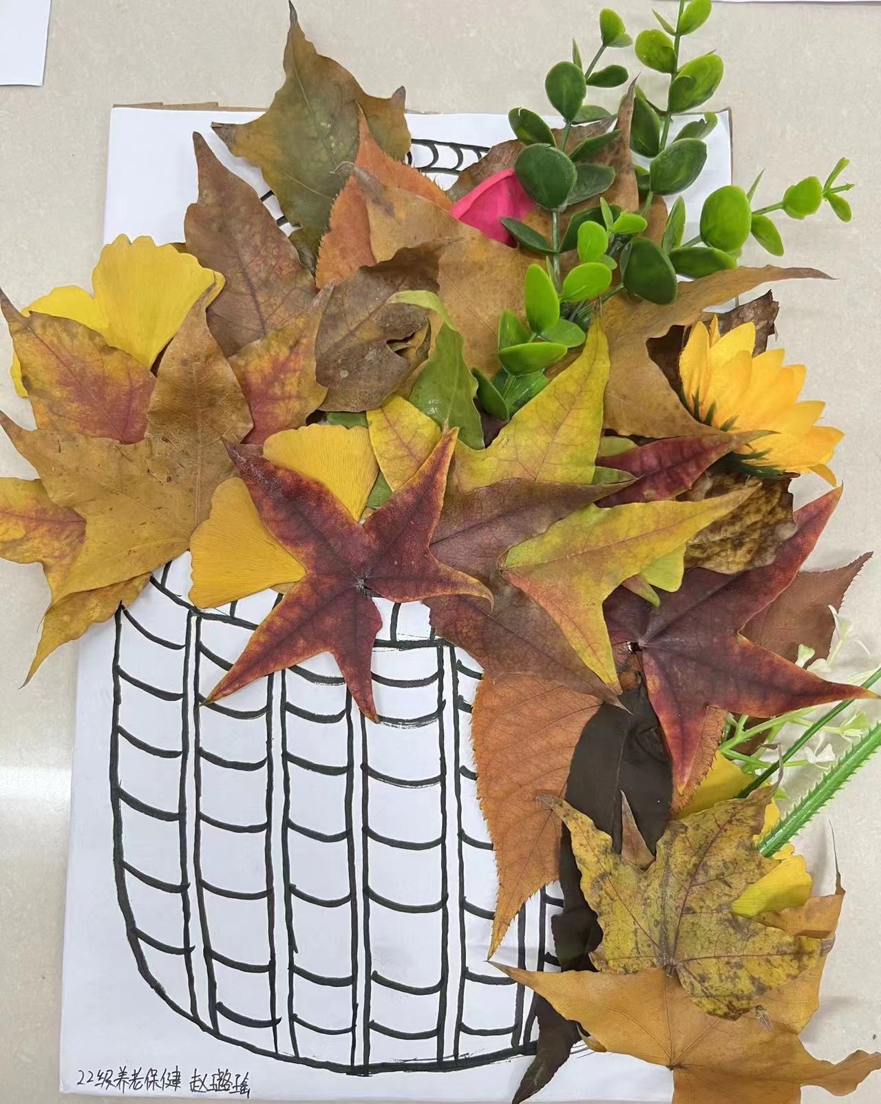 树叶纷纷而落,这是秋的一道独特景观,而在这秋叶遍地的季节里,拾起一片片落叶拍照留念,也是留住深秋记忆的一种浪漫方式。为进一步丰富校园文化生活,营造浓厚的校园文化氛围,展现大学生生机勃勃的精神面貌,锻炼同学们的动手操作能力,感受手工艺术所带来的乐趣,进一步提升创作者和评判者的认知能力,从而创造出懂得艺术和能够欣赏美的素养。运动与健康管理学院全体师生经过为期一个星期的创作,落叶DIY手工活动展示在22级班主任李盼老师的主持下完美落幕。