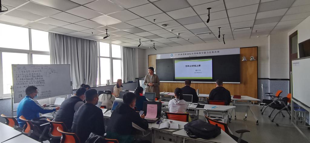 特邀嘉宾咸阳职业技术学院赵小义教授,为全体教师进行了信息化教学培训。赵老师从目前教学大背景、国家政策、线上课平台、线上课资料准备、线上教学评价、实践操作等六个方面进行了详细全面的讲解。赵教授科学严谨又不乏幽默的风格,引发大家兴趣,实践交流环节,互动积极气氛热烈。